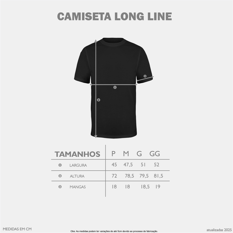 Camiseta Long-Line com estampa Shutter 1/18 — Se é 9 frames, o Shutter é 18. Camiseta fabricada com alongamento na barra, perfeita para looks mais Street Wear. O tecido escolhido é a meia malha egÃpcia com toque especial, que traz a sensação de toque de pêssego . Essa camiseta premium, possui em sua composição 96% de algodão e 4% de elastano, para que seja usada mais colada ao corpo e assim manter o conforto de uma camiseta nÃvel AAA.